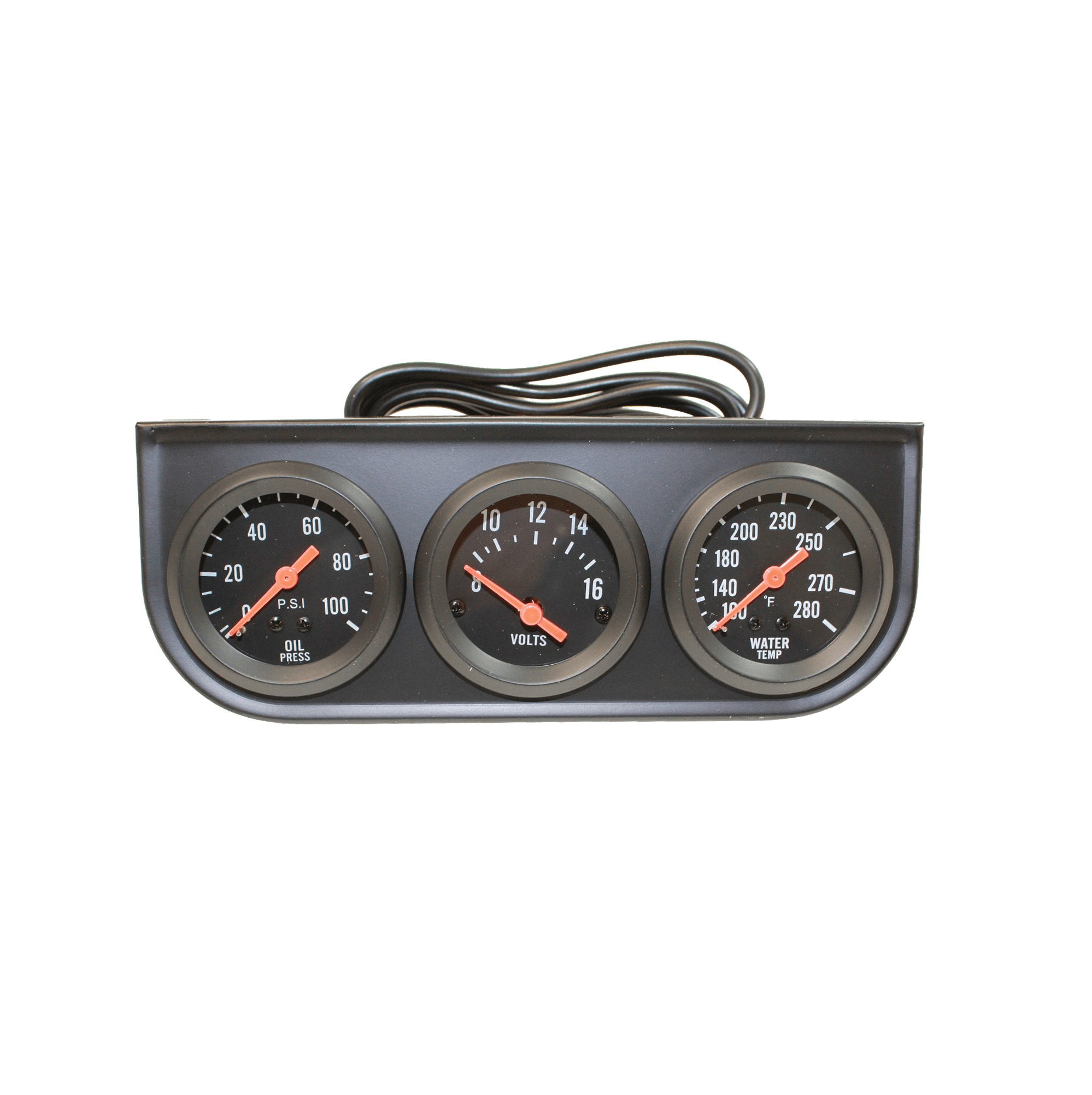 Black 2″ triple gauge kit with oil pressure, voltage & water temp