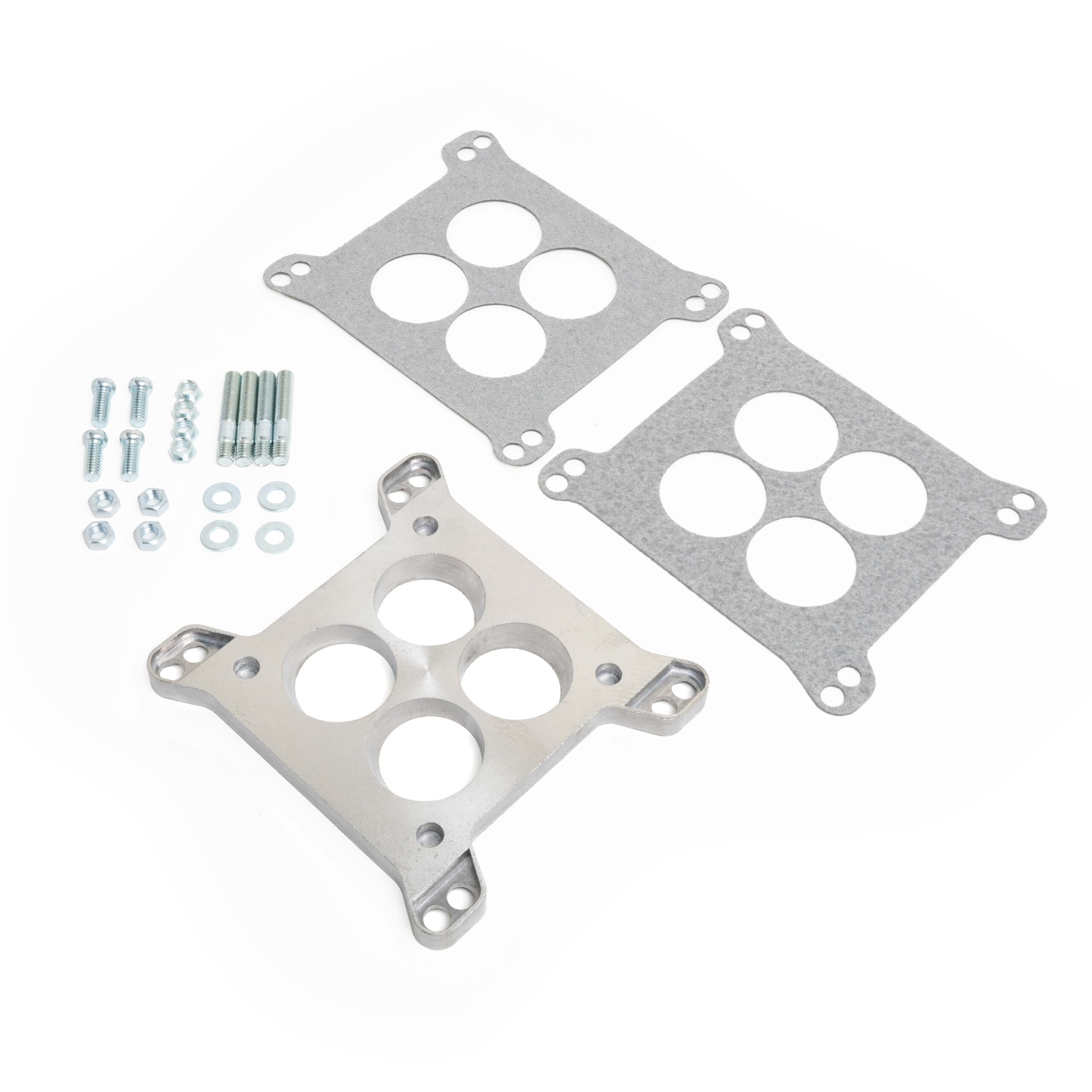 Mounts Holley or AFB 4-BBL square bore carburetors to small base, 1-7/16″ port 4-BBL carburetor flanges. Made out of high quality die cast aluminum with a 0.500″ thickness. Kits include gaskets and mounting hardware.
