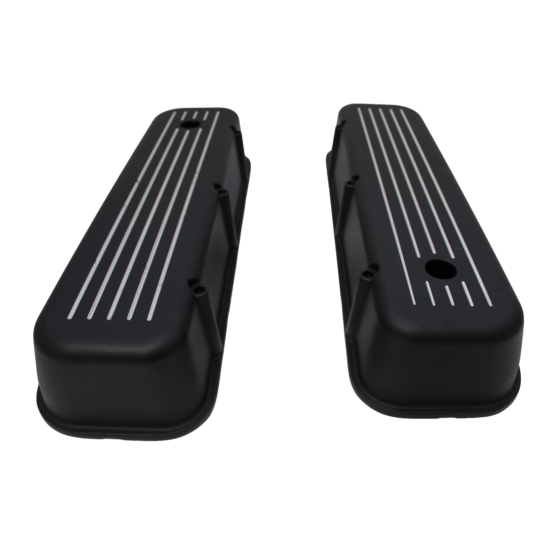 Black aluminum bb chevy tall valve cover – ball milled with hole & baffled
