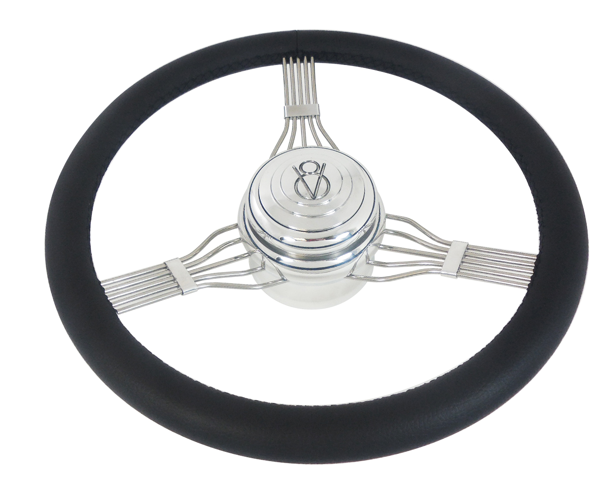 15″ s.s. steering wheel with v8 logo (adaptor & horn botton included)